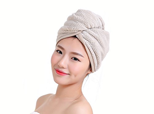 - QUICKLY DRY HAIR: The hair towel was made of soft coral fleece microfiber material are very absorbent and fast drying. Drying your hair naturally without an electric blower. Drastically reduce your hair drying time.