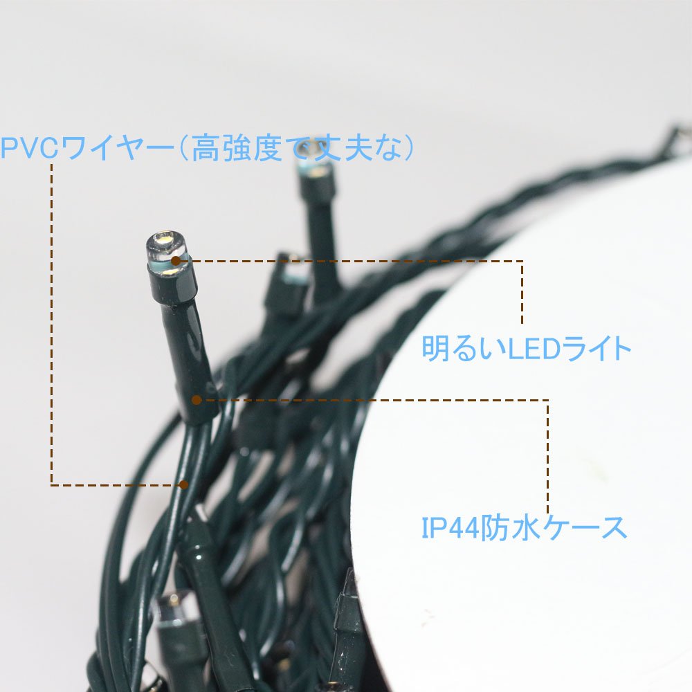53m、500LED、8種の照明モード、記憶機能、センサー自動開き機能。IP44、防水で、屋外装飾用。