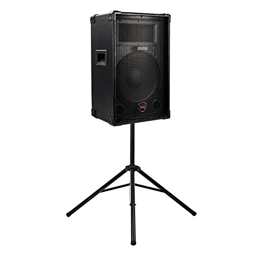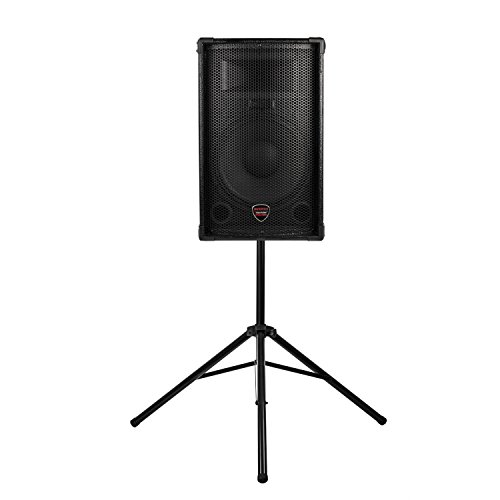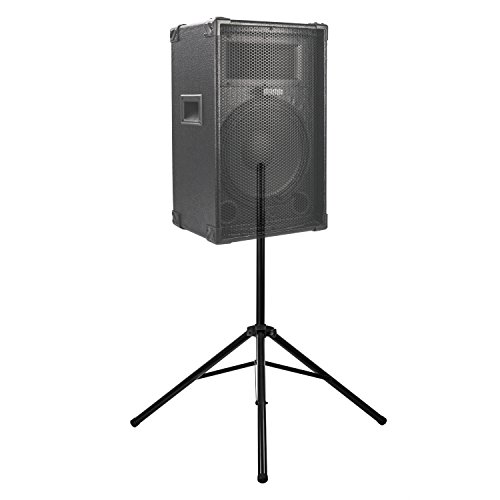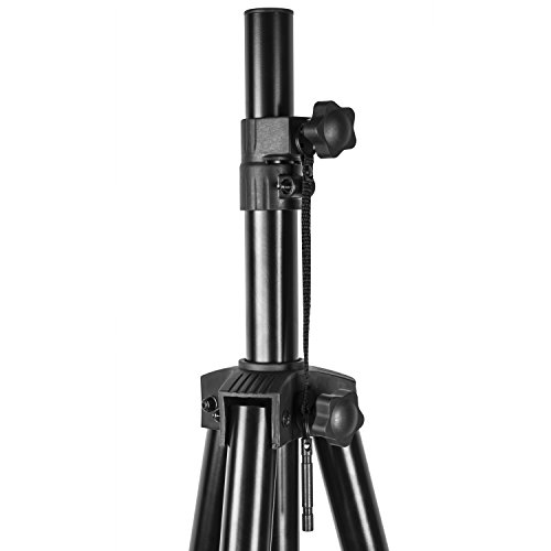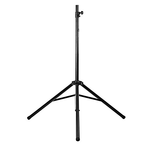 Professional-grade speaker stand with fully extendable legs and telescopic pole for universal adaptation to all speakers with a mountable cavity thread