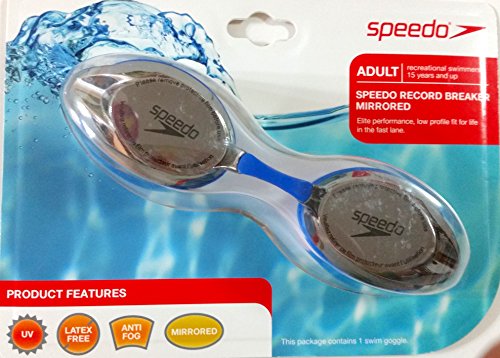 -. Title : Speedo Record Breaker Mirrored Latex Free UV Protection Anti Fog Goggles for Adult Recreational Swimmers 15 years and up