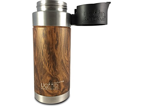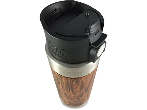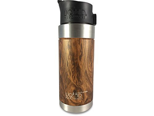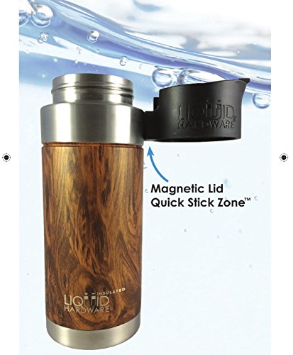 Liquid Hardware Aurora: Travel Coffee Mug Stainless Steel Double Wall Vacuum Insulated Leak Proof BPA Free with Magnetic Quick Stick Lid (Koa Wood Grain, 16 oz)
