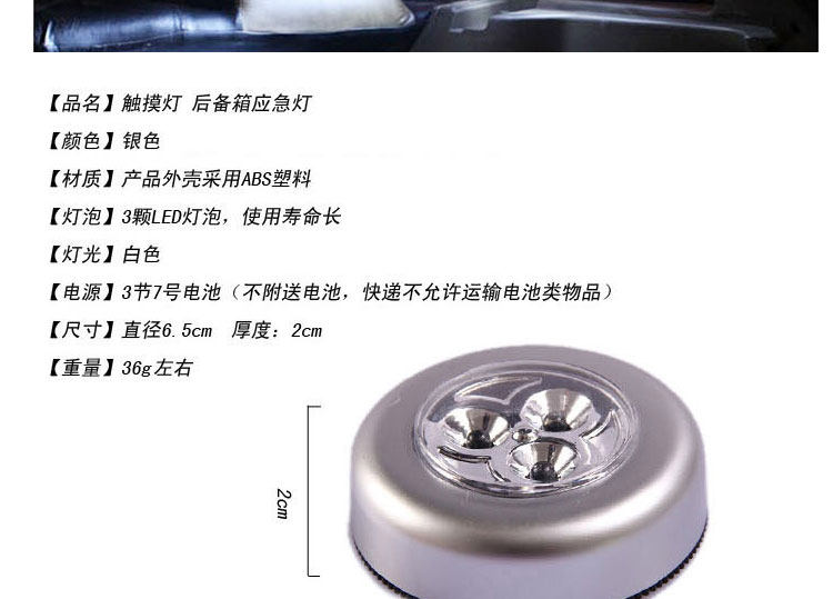 Package include:1*touch lamp(with 3 led lights,no battery)