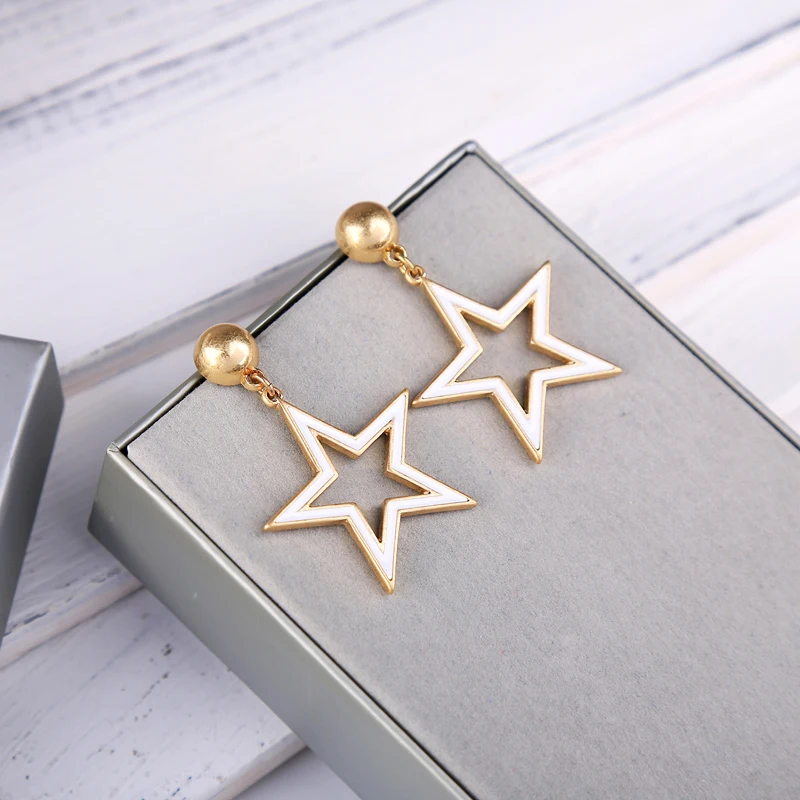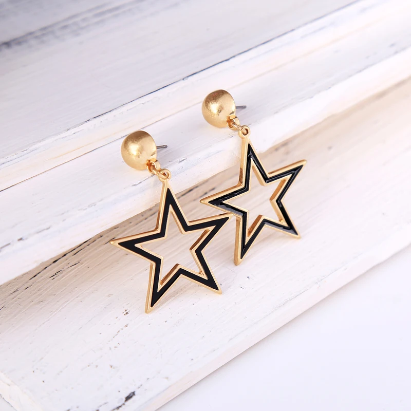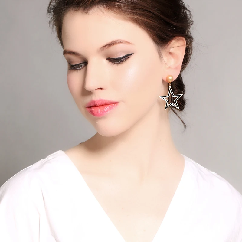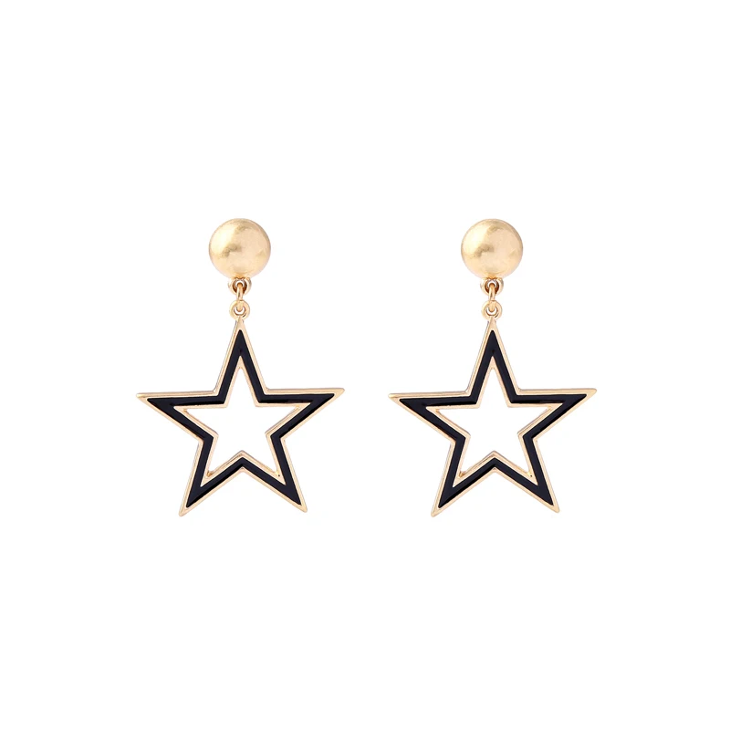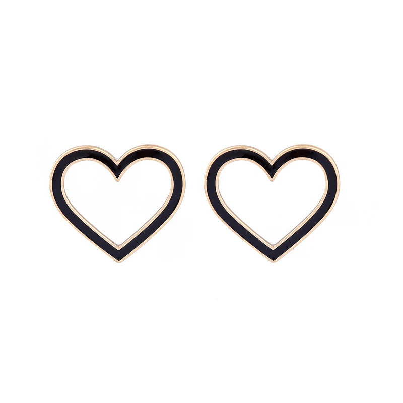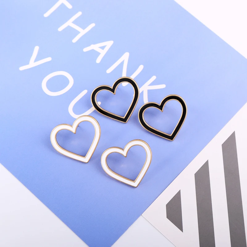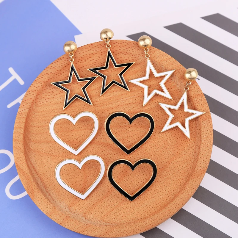 Production name ::KISS ME Black & White Enamel Pentagram Heart Stud Earrings Korean