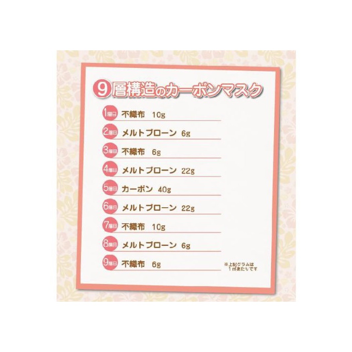 원본상품명: 9層構造カ?ボンマスク (細菌濾過?率.99%)50枚入(個包?)