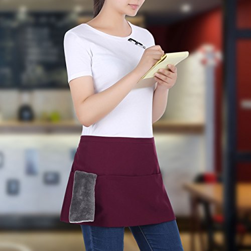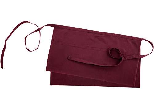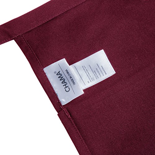 Chama Waist Apron With 3 Pockets(Set of 2, Burgundy) For Men Women Chef Baker Cooking Restaurant Bistro Craft Garden Half Aprons for Servers Craftsmen --2 Pack (Burgundy)