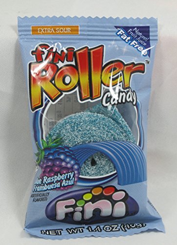 -. Title : Fini Rollers Blue Raspberry Frambuesa Azul, Extra Sour, 24 Pack