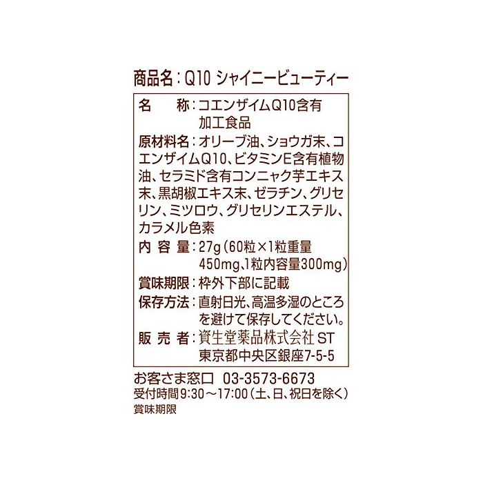원본상품명: 資生堂 Q10シャイニ?ビュ?ティ? 60粒 約30日分