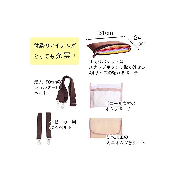 사양:외포켓,파우치,내부 패스너 포켓,메쉬 포켓×2,포켓×4,숄더 벨트,유모차용 벨트