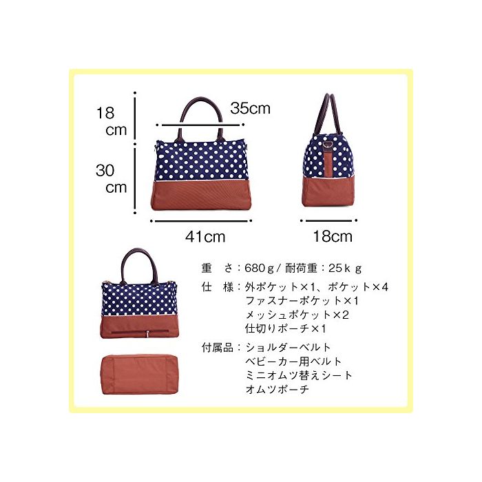 원본상품명: 【Grandir】 マザズバッグ 大容量 多機能 ドット柄 ショルダ 量 全4色