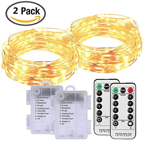 LED String Lights,Teputreda String Lights and LED lights with 8Mode Remote Controller,16.4ft 50 LEDs Different Colors (5m warm white 2 pack)
