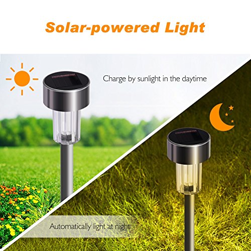 ENERGY SAVING: Powered by the sun. The solar path lights automatically turn on at night and turn off at dawn! They will stay lit for up to 8 hours illuminating your walkways for the night. Save your electricity bills.