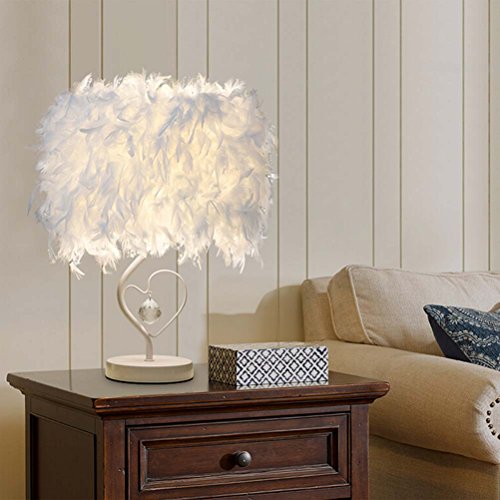 Surpars House Heart Shape White Feather Deco Table Lamp Crystal Bedside Table Lamp