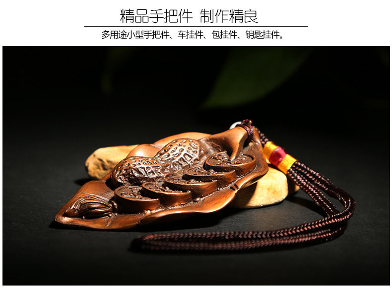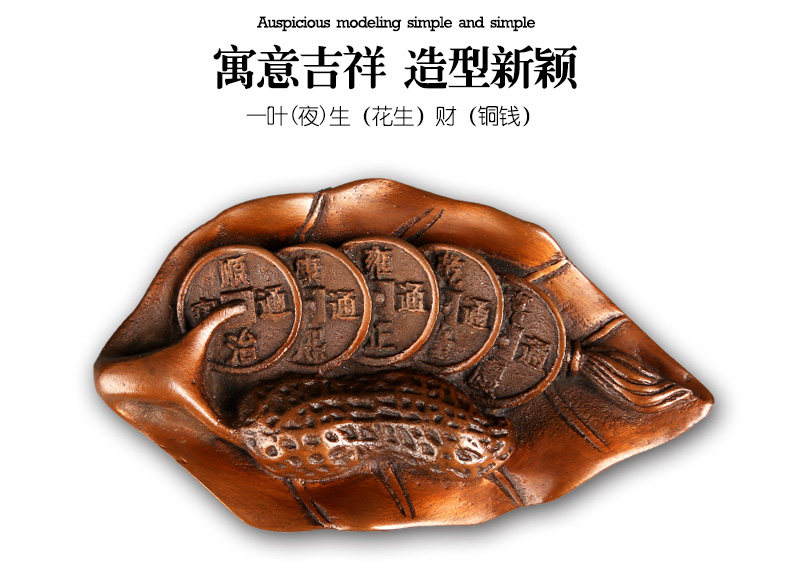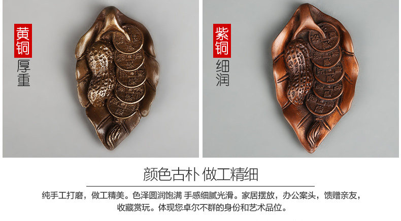 铜欣祥紫铜一叶生财镇纸手把件家居装饰品书房摆设中式工艺品摆件
