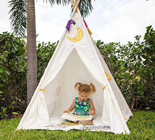IGNITE THE IMAGINATION Remember back when you were a kid, how fun it was to imagine yourself as Indians and cowboys, princes and damsels-in-distress, dragon slayers and warrior princesses? Our teepee indian tent is a fun playhouse to spark imaginative and creative characters and roles. The canvas is etched with an elephant, giraffe, moon and stars, making it a perfect unisex teepee for babies, infants, and toddlers that's as fun to look at as it is to play with.