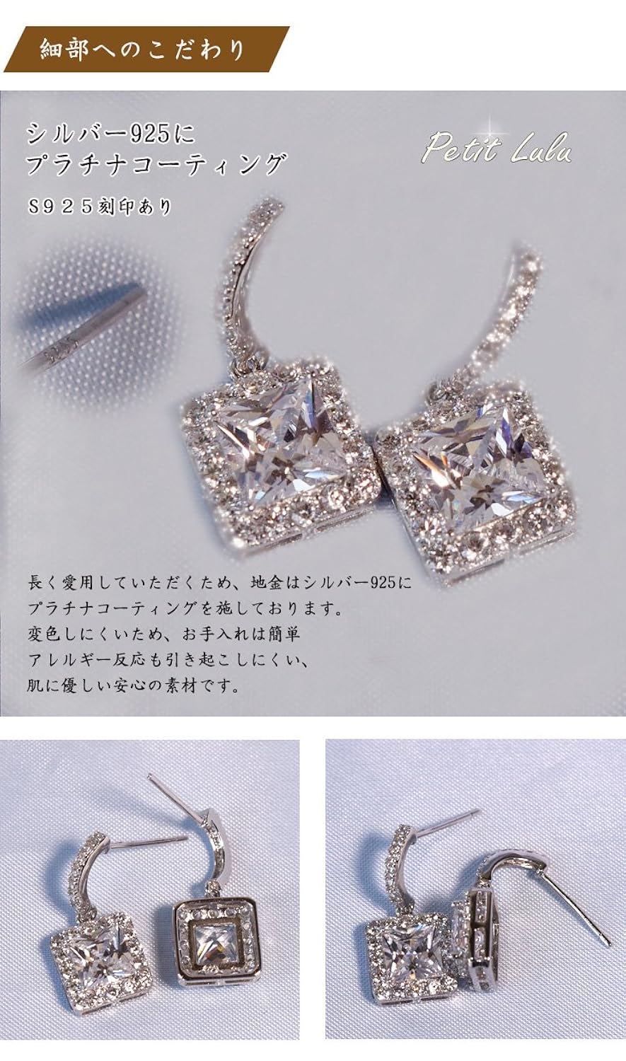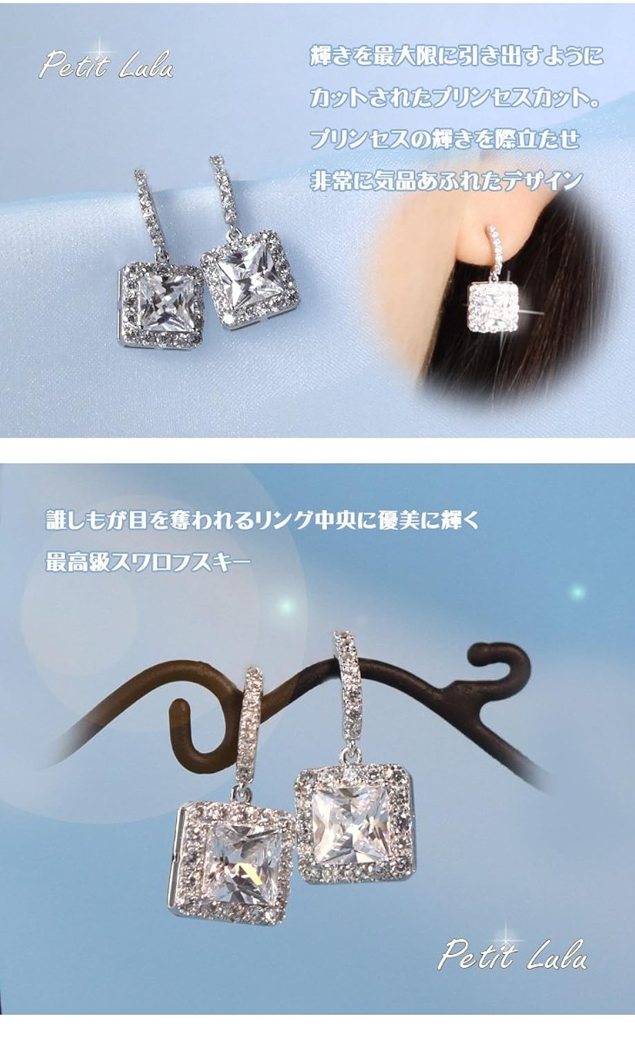 誰しもが目を奪われるリング中央に優美に輝く最高級スワロフスキーと周りを取り囲むように配置されたサイドストーンが品格ある輝きを保ち続けるピアスです。輝きを最大限に引き出すようにカットされたプリンセスカット。洗練されたそのデザインは、プリンセスの輝きを際立たせ非常に気品あふれたものとなっています。フープ部分にもスワロフスキーを惜しげもなく敷き詰め、リッチな印象も合わせ持たせました。