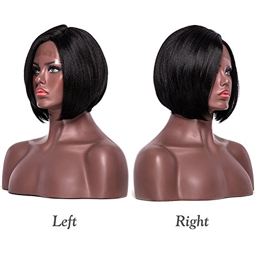 Short Bob Synthetic Lace Front Wigs for Black Women L Part Black Color Light Yaki Heat Resistant Synthetic Hair Replacement Wigs