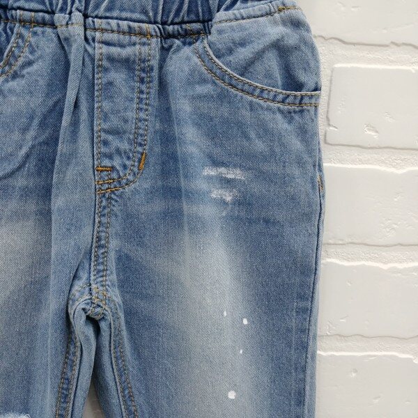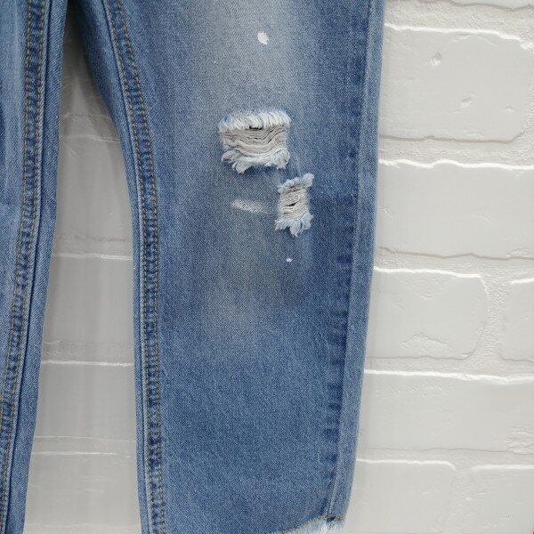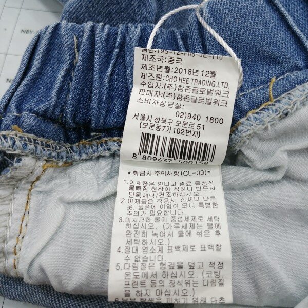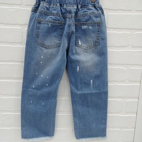 난스판 데님 구제 팬츠로 구제 워싱과 페인팅 나염이 포인트로 들어감, 와이드한 핏이며 밑단 롤업해서 입기에도 좋은 아이템.