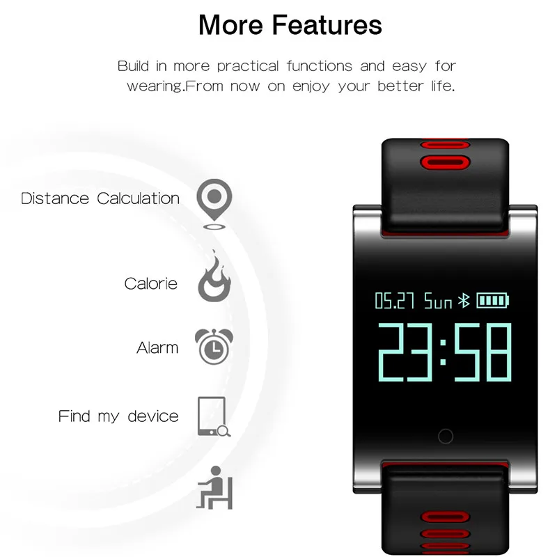 Function:Passometer,Message Reminder,Sleep Tracker,Heart Rate Tracker,Call Reminder,Fitness Tracker