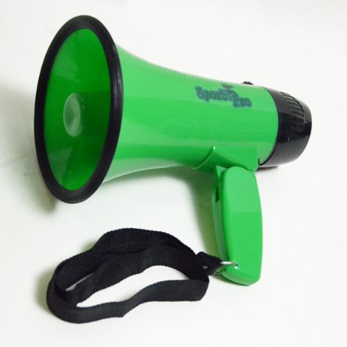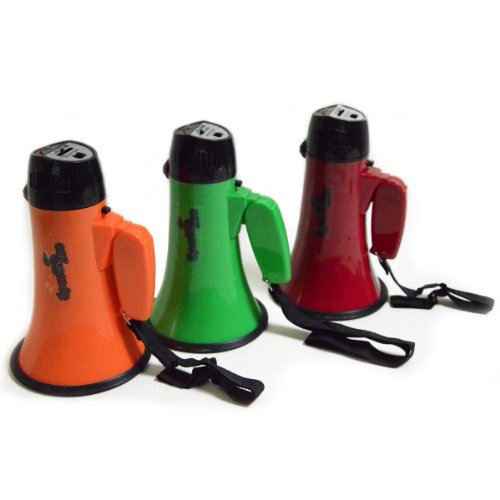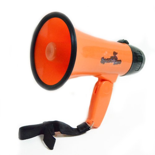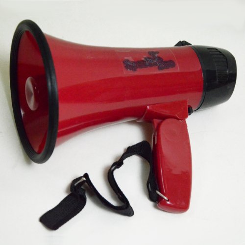 Studio : Sports Pro Publisher : Sports Pro Binding : Toy Product Description Amplify your voice cord-free and with clarity with this lightweight device. This megaphone also includes a siren sound. Projects voice up to 200 yards. It's lightweight and portable, perfect for meetings, assemblies, propaganda...etc. Bigger in size than model MG-212 0