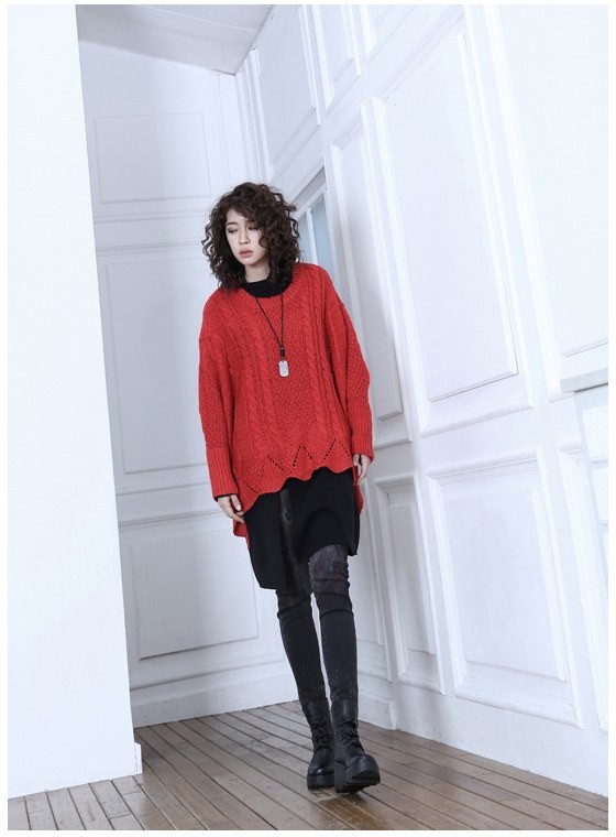 商品名:ニット レディース セーター 長袖 無地 秋 2017 モード系 個性的 40代 ファッション