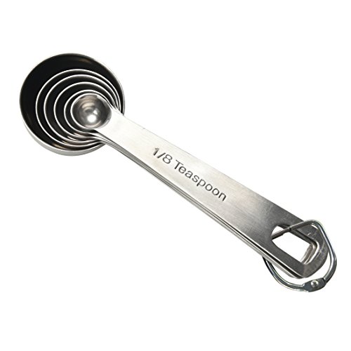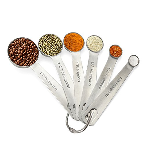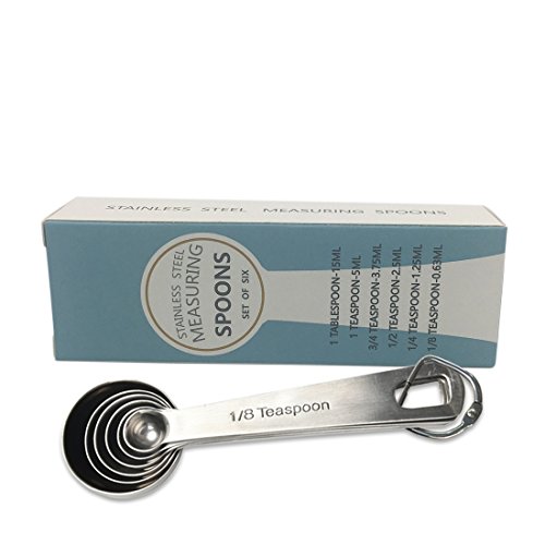 - SET CONTAINS 6 SPOONS- 1/8-tsp, 1/4-tsp, 1/2-tsp, 1/2-Tbsp, 1-tsp. and 1-Tbsp and each measurement is engraved on the handle of each spoon, and not easy to wear