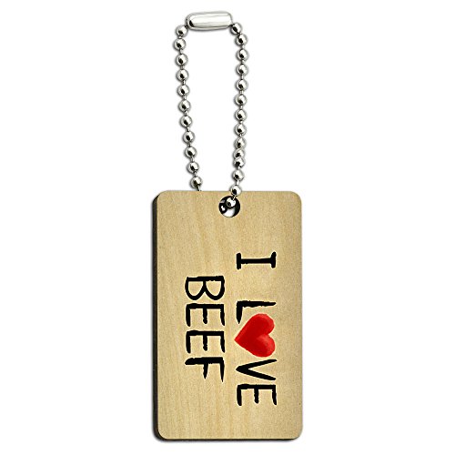 (Graphics and More)/Accessories/Wallets, Money Key Organizers/DIRECT FROM USA/I Love Beef Written on Paper Wood Wooden Rectangle Key Chain