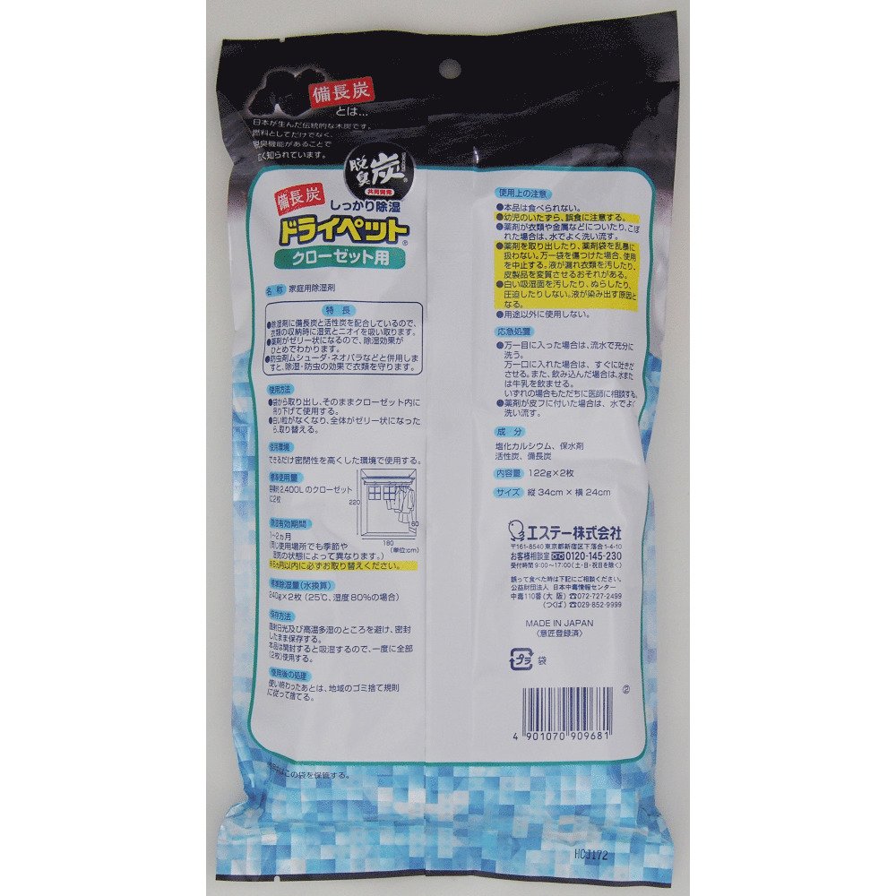 ● Bincho charcoal and activated charcoal are mixed in dehumidifying agent, so absorb moisture and odor when storing clothes.