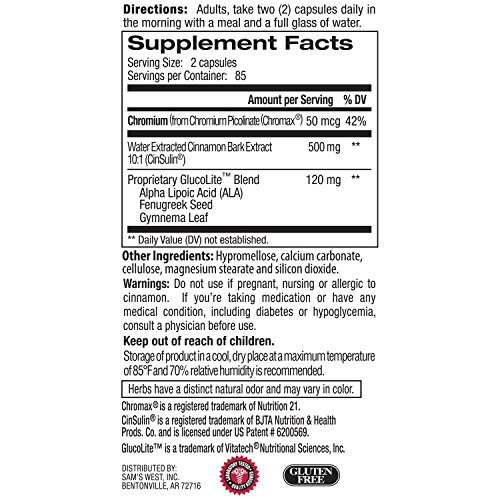 Member's Mark Concentrated Cinnamon with Clinicall Proven CinSulin Water Extract of Cinnamon 500mg plus Chromium & GlucoLite Blend (1 bottle (170...