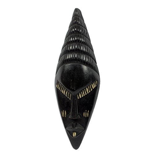 NOVICA Decorative Large Sese Wood Mask, Black 'Vigilant Hunter'