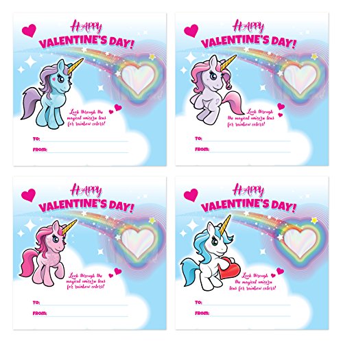 Studio : Kangaroo Manufacturing Publisher : Kangaroo Manufacturing Binding : Toy Product Description Celebrate Valentine's this year with our Rainbow Unicorn Valentine's Cards! Peek through the magical unicorn heart lens to see rainbow rays! Includes 28 cards with 4 different and incredibly cute unicorns. Envelopes are included. 0