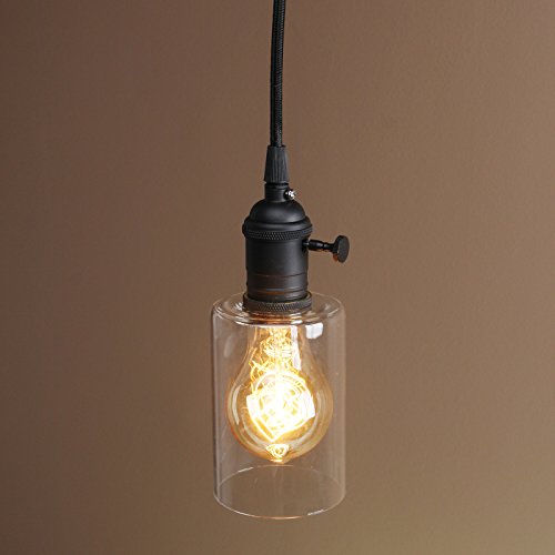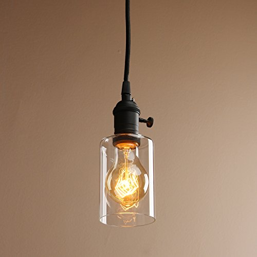 Permo 1 Light Vintage Style Hanging Mini Clear Glass Cylinder Shade Ceiling Rustic Pendent Light Fixture (Black)