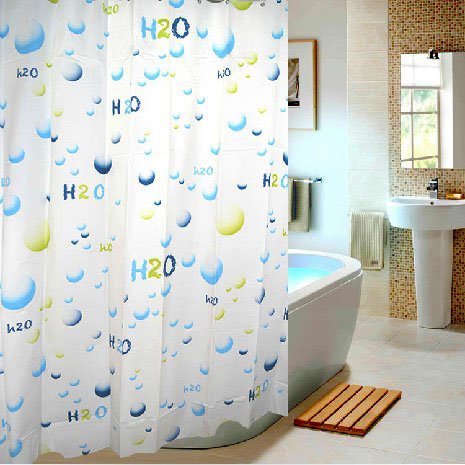 Fashion Design High qulity 71"x71" Shower Curtain + set of 12 unbreakable shower curtain hooks- water molecules (H2O) pattern