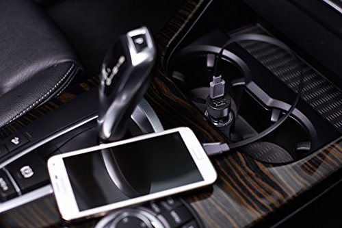 Lab C Dual USB Car Charger for Android, Samsung, Galaxy, Note, Blackberry, Bluetooth Headsets, Headphones, Garmin Navigators - Space Grey with Micro 5 pin Cable