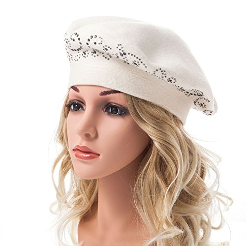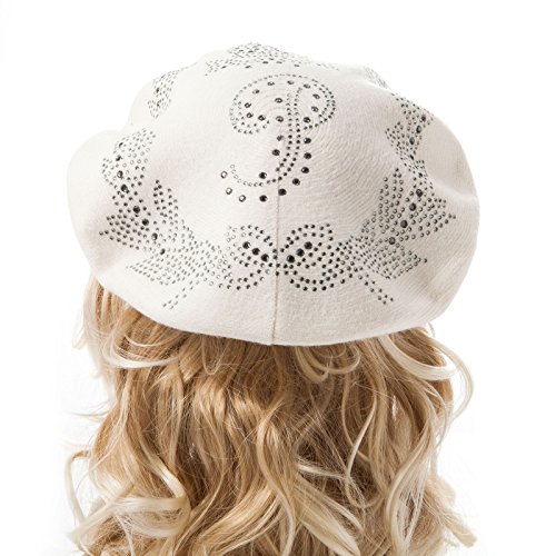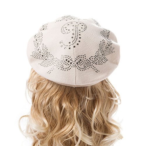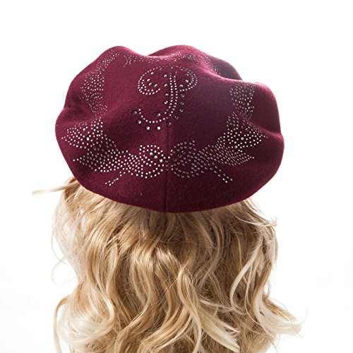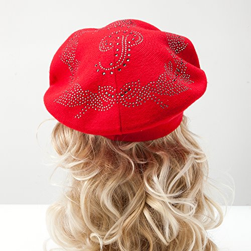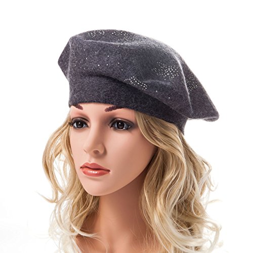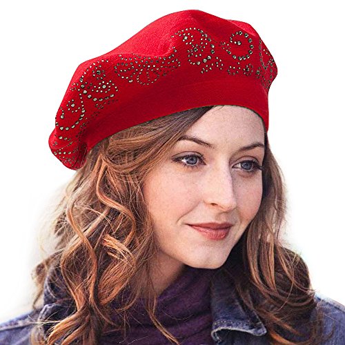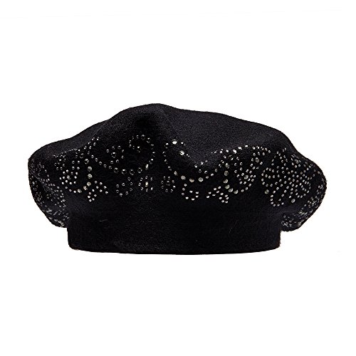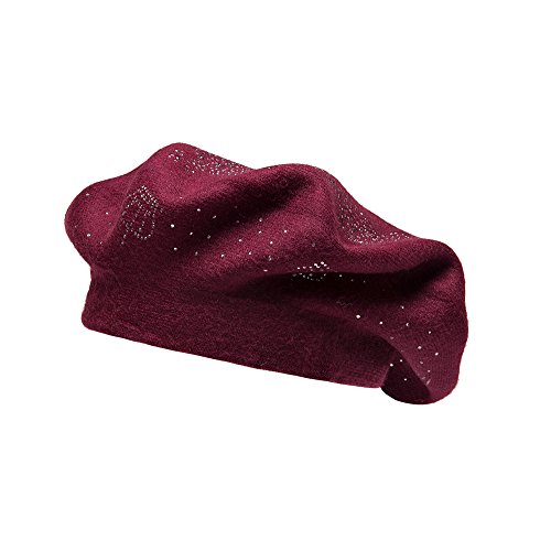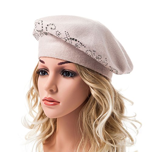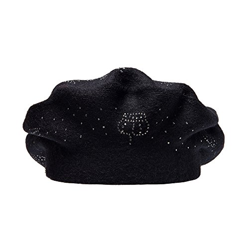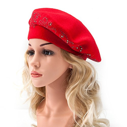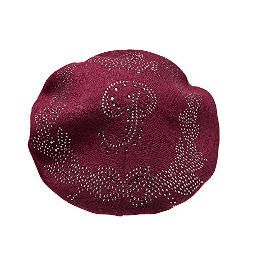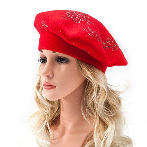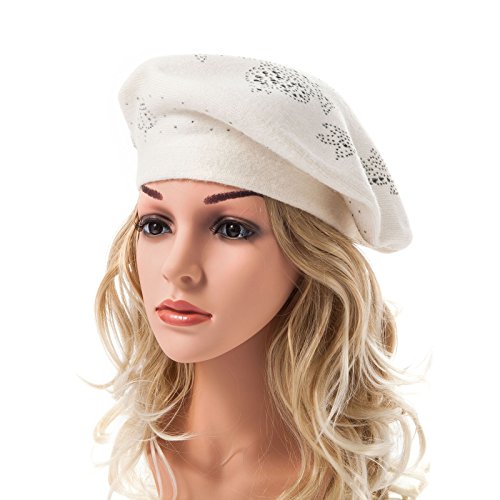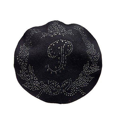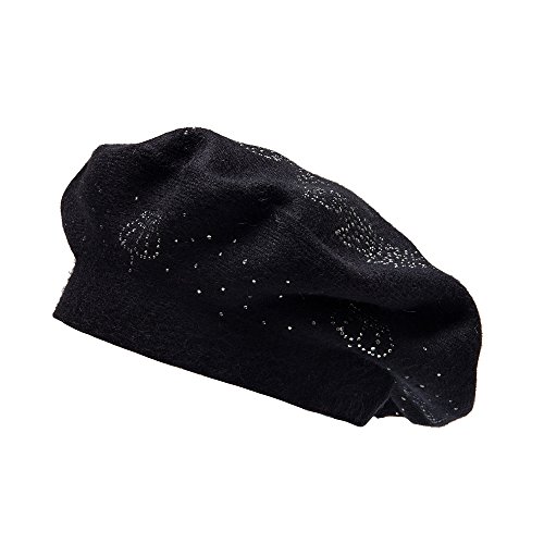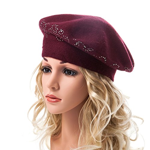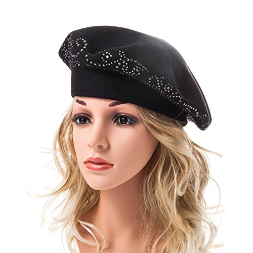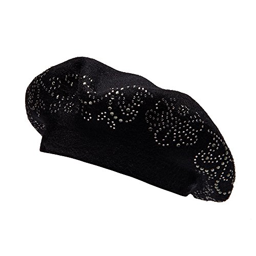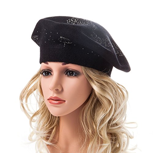 | LADYBRO Wool Winter Berets For Women Rhinestones Double Layers headgear Knit Hats |