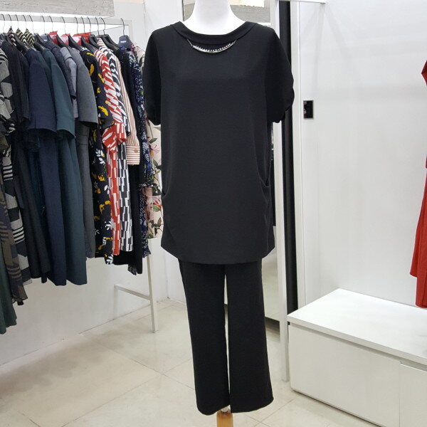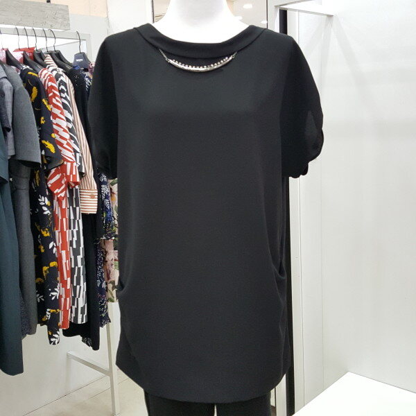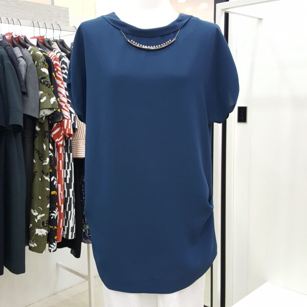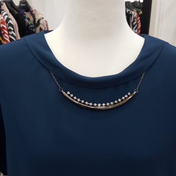 목걸이 포인트로 화려함과 여성스러움이 독보이고 정장 스커트 팬츠 다양하게 어울리는 블라우스입니다