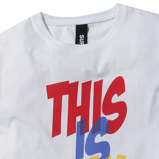 - 앞판 배색의 레터링 프린트를 적용한 공용 티셔츠.