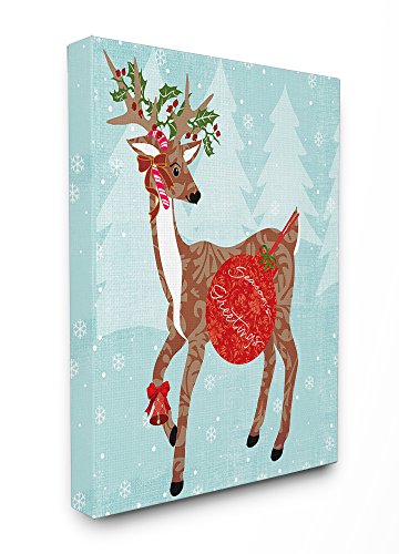 Stupell Home Décor Seasons Greetings With Reindeer Oversized Stretched Canvas Wall Art, 24 x 1.5 x 30, Proudly Made in USA