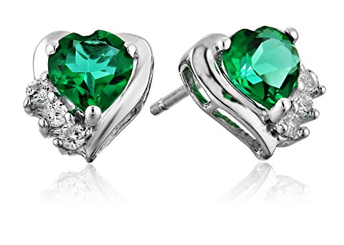 Sterling Silver Heart Shape Simulated Emerald with Round Created White Sapphire Pendant Necklace and Earrings Heart Box Jewelry Set