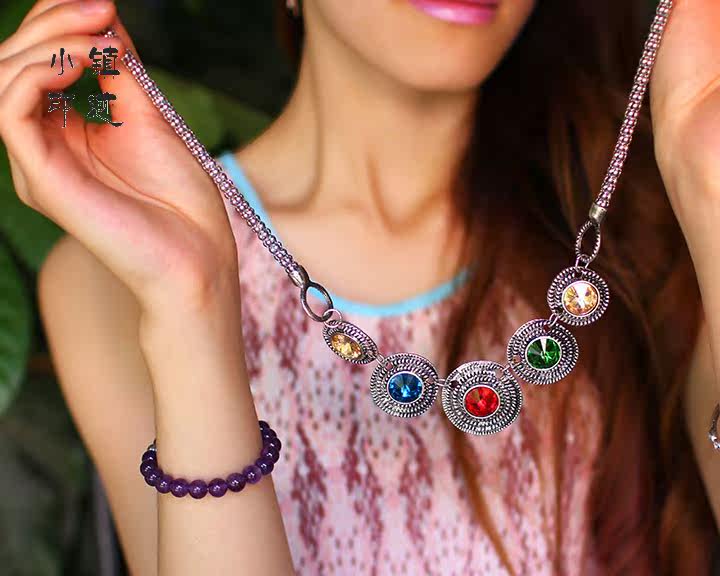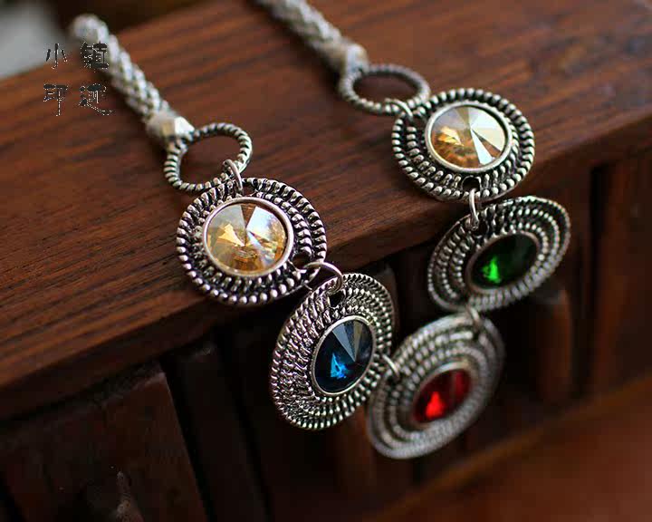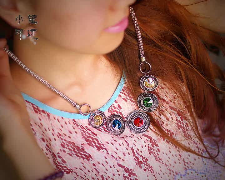 Four-color disc retro necklace
