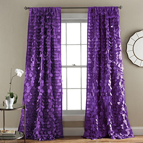 These stunning window curtains features layers of silky, circular patterns that create beautiful ruffles over the entire fabric. With its rich purple color, this panel will fabulously dress up any window in your home.