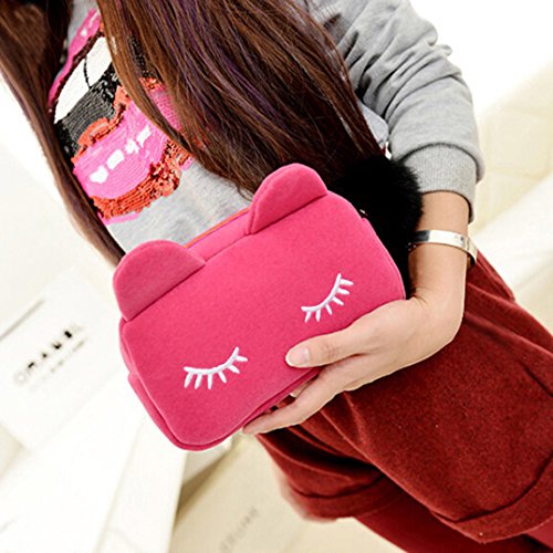 -. Feature : A perfect choice for putting your makeup, coins, cash, card, ect. / Lovely cartoon cat design, this flannel storage case is pretty cute and practical / Practical and Portable / Convenient Zipper Design / Material: Flannel, Alloy