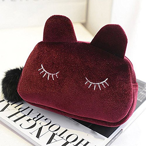 -. Title : Polytree Portable Cartoon Cat Makeup Flannel Cosmetic Bag Pouch