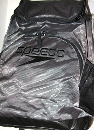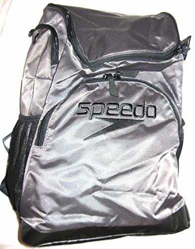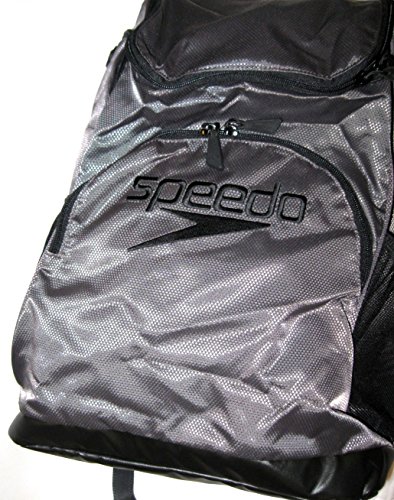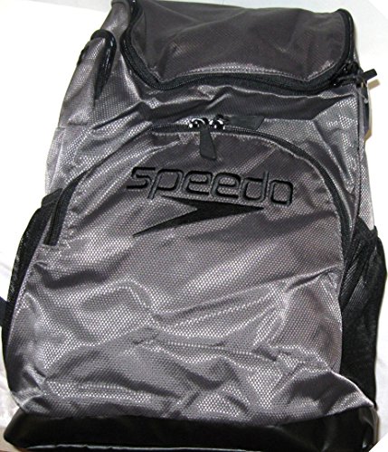 SPEEDO QUANTUM 35 LITER LARGE SWIM TEAM BACKPACK DECK BAG (GREY/BLACK/BLACK & EMBROIDERED LOGO)