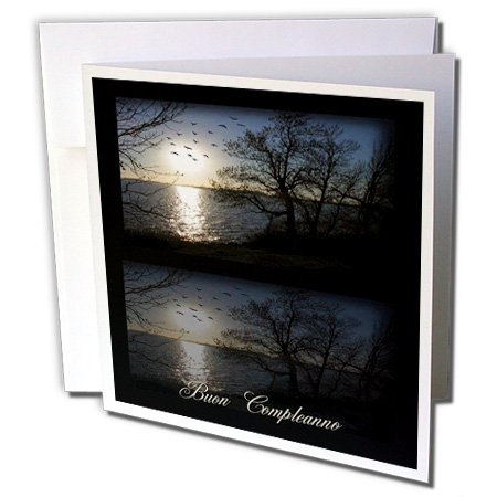 -. Binding : Office Product -. Brand : 3dRose -. Feature : Dimensions (in inches): Card 5.5 H x 5.5 W, envelope 6 H x 6 W / Heavy duty card stock with blank interior / Additional postage may be required / Cards are creased for easy folding / Set of 6 greeting cards; 6 white envelopes included. -. Label : 3dRose LLC -. Manufacturer : 3dRose LLC -. ProductGroup : Office Product -. ProductTypeName : PAPER_PRODUCT -. Publisher : 3dRose LLC -. Studio : 3dRose LLC -. Title : Beverly Turner Birthday Photography - Across the lake, Buon Compleanno, Birthday in Italian - Greeting Cards