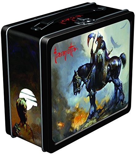 -. Feature : Officially licensed Frazetta merchandise / Features frazetta's classic art / Measures 8" by 7" by 3 3/4" / Frazetta's savage art pops from the high quality heavy-gauge litho-P.R.Inted tin lunchbox / Embossed Frazetta logo