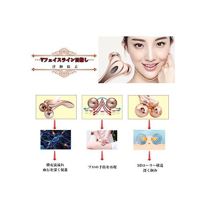 원본상품명: Fiskaco Y字型美容ロラ 顔せ ボディ用マッサジロラ 充電不要 微弱電流付き 3D美顔器 ロズゴルド