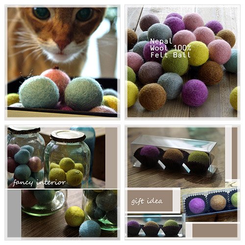 A cat toy rounded natural wool one by one manually.