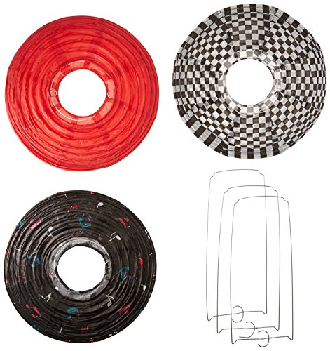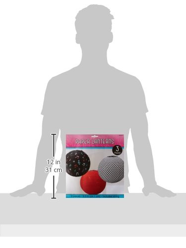 Nifty 50's Theme Party "Rock and Roll" Round Printed Lanterns Decoration, Paper, 9", Pack of 3