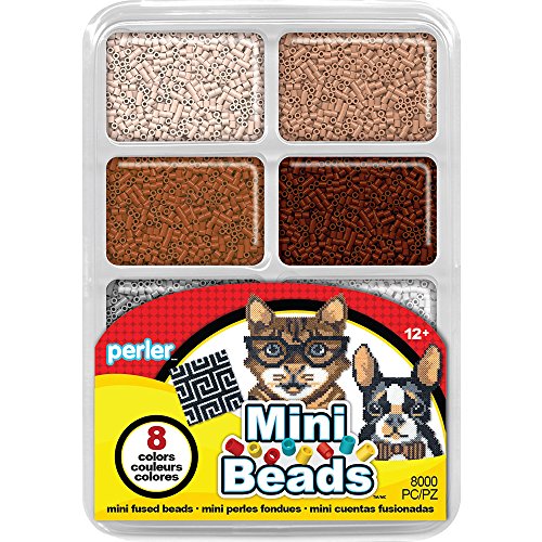 - Includes a total of 8000 Perler mini fuse beads in sand, tan, light brown, brown, grey, clear, black and white