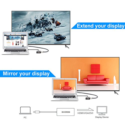 Mirror or Extend your laptop: Use your display as one continuous desktop, spread out your work any way you like by moving your pointer past the edge of one display. The thunderbolt to HDMI connector helps you to set up an extended desktop. This Mini Displayport to dvi adapter allows you to set up video mirroring to show the same desktop and windows on multiple display at the same time. Get a large view content on a big display or HDTV.